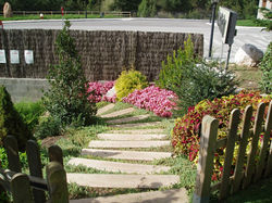 Tipus de plantes: Per estar en un clima bastant extrem , hem treballat molt amb coníferes, arbusts resistents i moltes plantes aromàtiques perennes de la zona. El Jardí te una piscina pel clients del hotel dominant la flor de temporada i les plantes aromàtiques